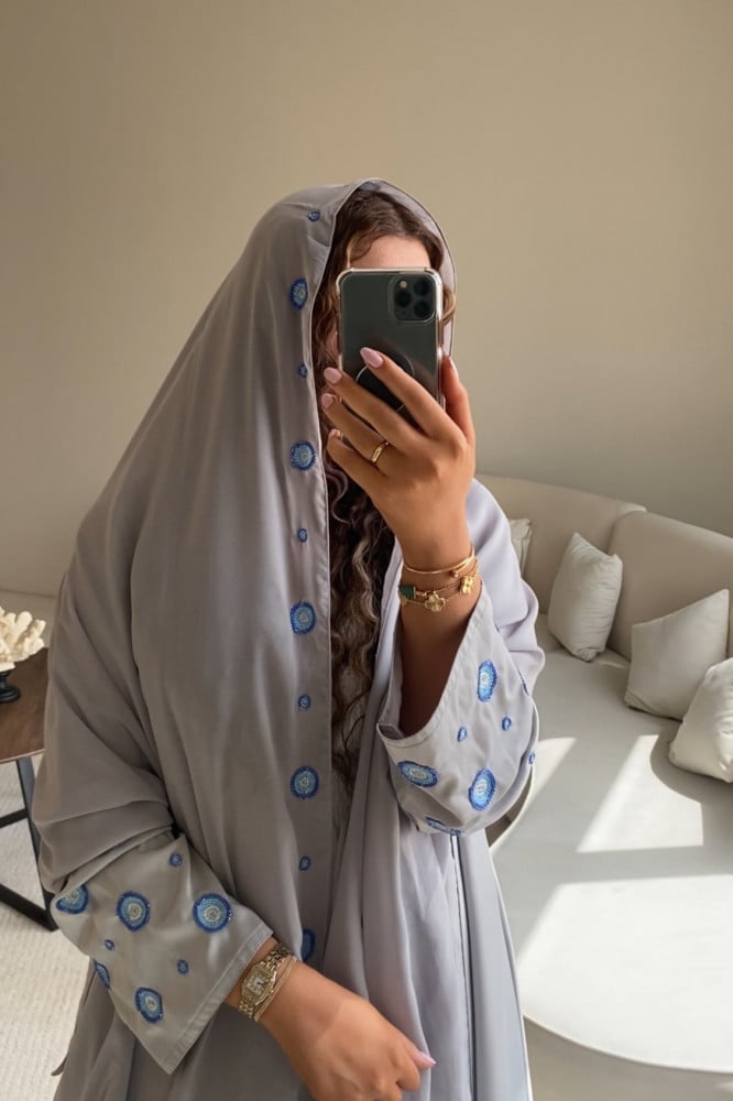 عباية مميزة مصنوعة من قماش كريب حرير الفاخر، يجمع بين اللمعة الهادئة والملمس الناعم ليمنحك إطلالة أنثوية راقية. مثالية للمناسبات الأنيقة والمشاوير الراقية في المواسم المعتدلة.