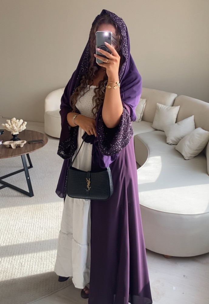 تم استخدام قماش كريب جورجيت المعروف بنعومته ولمسته الخفيفة لإنتاج تصميم أنثوي مريح، يتميز بالانسيابية العالية والملمس الراقي
