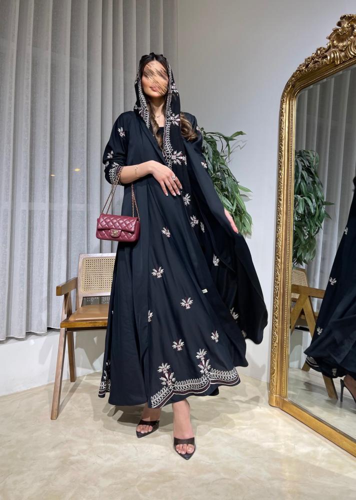 اللمسات المطرزة تضيف بعدًا أنثويًا أنيقًا، مع لمسة كلاسيكية تناسب السهرات والزيارات الخاصة.